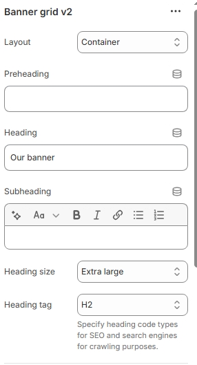 The Grid Banner section offers various style layouts that can be fully customized to suit your needs. You can adjust the image height or set it to adapt to different screen sizes for a responsive design. The number of items displayed can be tailored for desktop, tablet, and mobile views, ensuring an optimal appearance on all devices. Additionally, the banner allows you to customize colors, including backgrounds and text, to match your site's branding. Each banner item supports image or video uploads, with separate customization options for desktop and mobile, providing flexibility in presenting your content.