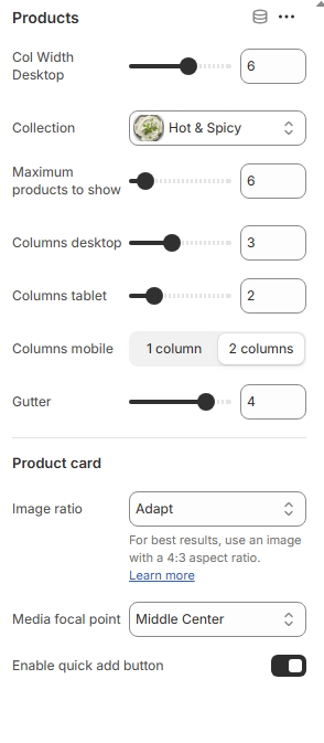The Featured Collection v1 section allows you to create a layout where one side features an image, while the other side displays the products from your collection. This setup provides a visually appealing and balanced design, showcasing both imagery and products in a clear, organized manner. You can customize the image and product display to suit your branding, ensuring an engaging and dynamic presentation for your featured items.
