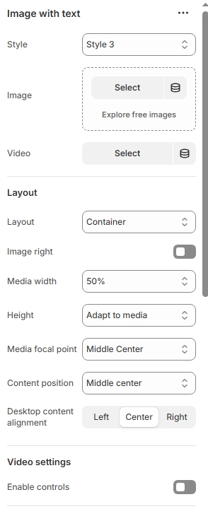 The Image with Text section comes with full settings, offering complete flexibility in customization. You can upload either images or videos, giving you the option to choose the best media for your content. Additionally, you can adjust the spacing between the media and the text, allowing you to fine-tune the layout for a balanced and visually appealing design. This feature provides a seamless way to integrate media with text, giving you full control over how content is presented.
