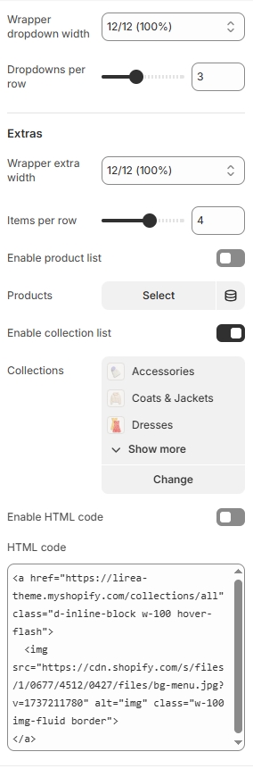 Enter the menu name(lv1) that you want to apply to the mega menu
